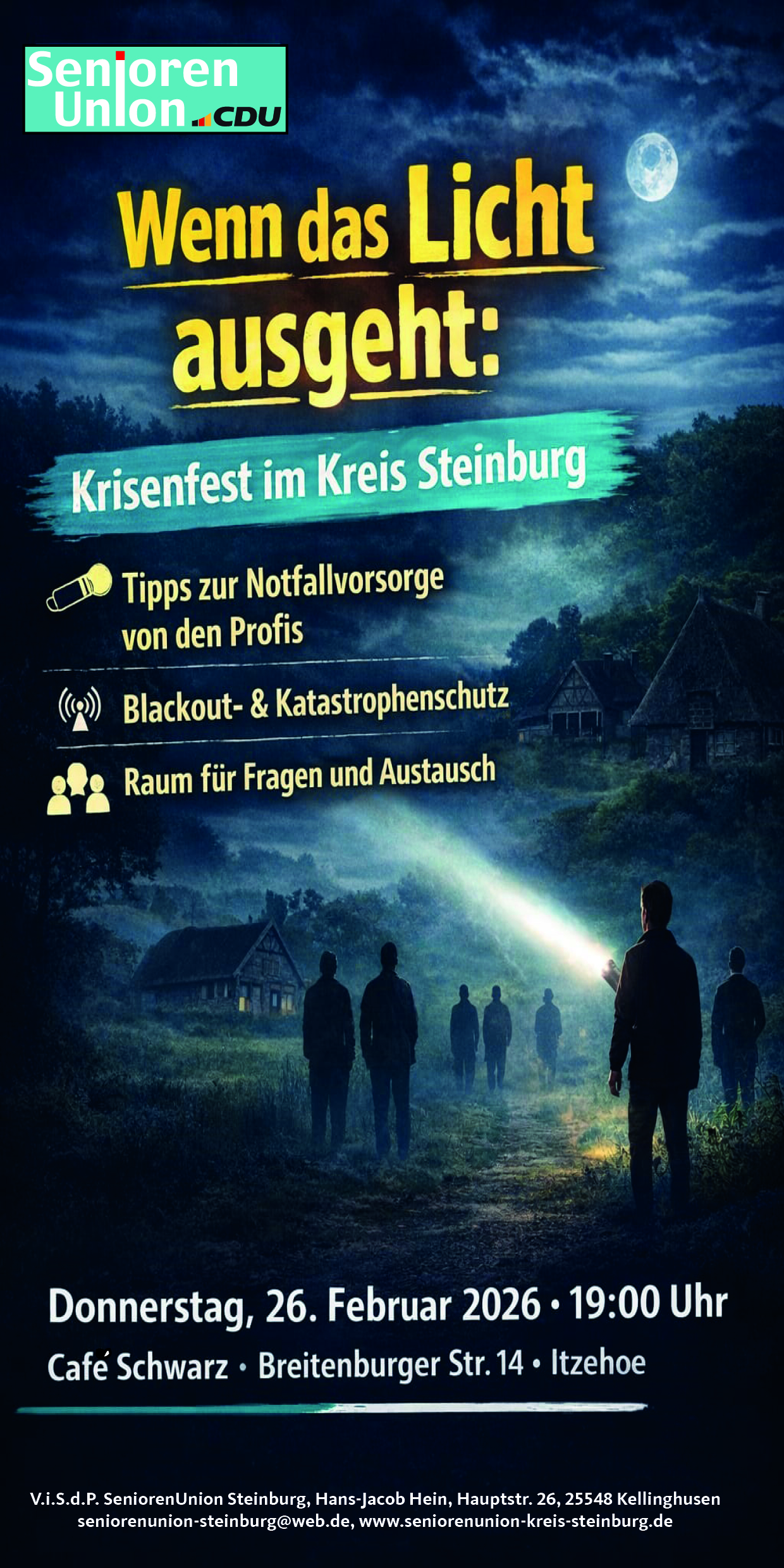 Termin 26.02.2026 19:00 Café Schwarz Breitenburger Str. 14 25524 Itzehoe zum iCalendar hinzufügen zum Google-Kalender hinzufügen Empfehlen Sie uns!Bei Facebook teilen Bei Twitter (X) teilen Bei Whatsapp teilen Diese Seite drucken Diese Seite einem Freund schicken